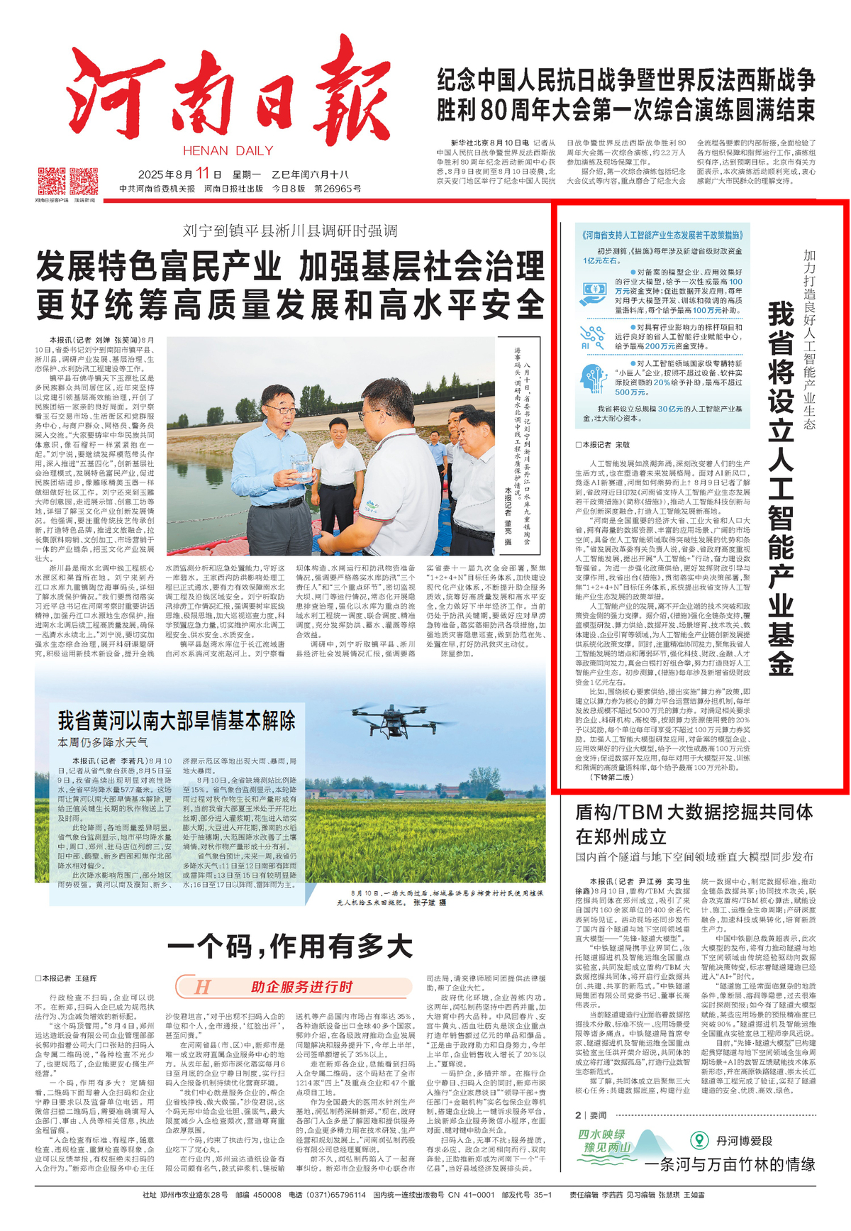 当前,我们正加快建设河南省人工智能基础服务中台,打造“中原系”本土化大模型产品,构建政务、工业领域大模型。但在发展过程中,也面临着研发投入大、建设成本高、算力供需精准对接不足、融资渠道受限等现实挑战。《河南省支持人工智能产业生态发展若干政策措施》的出台恰如春风化雨,不仅直击人工智能行业发展的痛点堵点,更为企业未来协同发展指明了新路径。